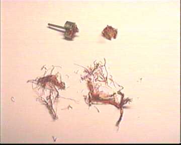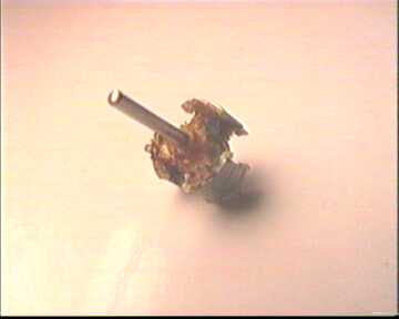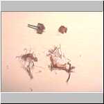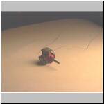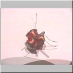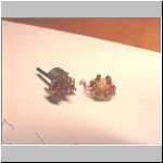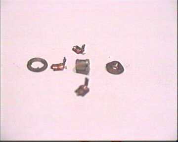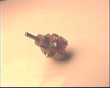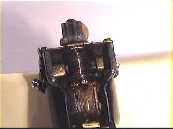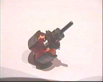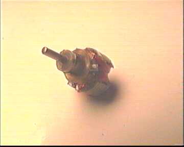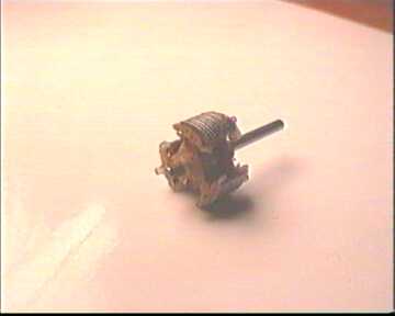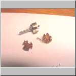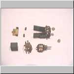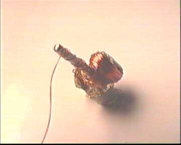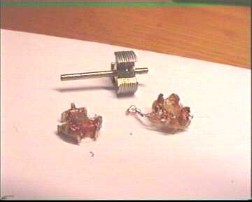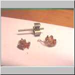 | Es stellte sich nun heraus, daß der Anker dieses Motors anders aufgebaut ist, als der des großen. Die Teile des Kollektors sind die gleichen wie beim großen Motor, die Pappscheibe ist aber etwas kleiner und die Innenseiten des Ankers sind nicht lackiert, dafür sind zwei Kunststoffteile vorne und hinten auf die Achse geschoben worden, die die Stirnflächen vollständig abdecken und um die Kanten greifen. Die Wicklungen waren mit diesen Teilen total verschmolzen und ich habe zwei Stunden mit Pinzette, spitzer Nadel und Taschenmesser verbracht, um Kunststoff und Drahtreste voneinander zu trennen :-( . Den Lohn der Mühe sieht man auf dem vierten und fünften Bild. | |||||