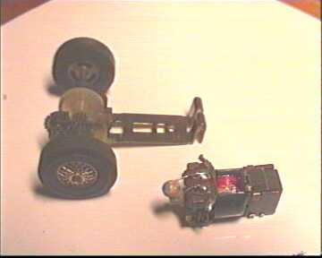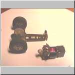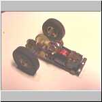 Ich habe den kleinen Motor meines Monoposto schließlich noch einmal komplett neu gewickelt, diesmal habe ich einen Kupferlackdraht von 0,1 mm Stärke verwendet, den es auf der 450m Rolle für kleines Geld bei Conrad Elektronik zu kaufen gibt (www.conrad.de). Es war möglich, pro Wicklung 210 Windungen aufzubringen, damit ist der kleine Anker bis zum Anschlag gefüllt. Wie gewöhnlich habe ich die Spulen dann mit Nagellack fixiert. Nach dem Zusammenbau erfolgte wieder der obligatorische Test mit der 9V Batterie und diesmal schnurrte der Motor so wie er sollte :-) . Ich habe den Motor dann in meinen Monoposto eingebaut, aber irgendwie kam der Wagen nicht so richtig auf Touren. Also nochmal alles auseinandergenommen. Ich fand heraus, daß der Magnet des Motors auf die Ankerachse drückt, sobald der Motor am Getriebe eingeklemmt wird :-o. Um das zu beseitigen habe ich mit einem scharfen, kleinen Bohrer vorsichtig eine Mulde in den Magneten gebohrt und damit war das Problem endgültig beseitigt. Beim Einschieben des Magneten in den Motor fiel mir dann noch auf, daß dieser eigentlich seitlich ziemlich viel Spiel zum Gehäuse hatte, das gleiche sieht man im dritten und vierten Bild an einem anderen Motor, hier läßt sich problemlos ein doppelt gefaltetes Blatt Papier einschieben. Also bearbeitete ich das hintere Lagerblech vorsichtig mit einer scharfen Klinge, bis eine Breite erreicht war, daß der Magnet ganz genau zwischen die Wangen paßte. Da dadurch auch der Abstand des Ankers zu den Wangen kleiner wurde, vermutete ich, daß der Motor anschließend auch besser laufen würde. Beim Test mit der Batterie stellte sich das auch als richtig heraus, der Motor erreichte anscheinend hier schon eine höhere Drehzahl als vorher. Nachdem das Motörchen dann endgültig im Monoposto implantiert war, konnte ich das auch auf der Strecke feststellen :-). |