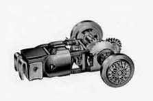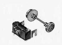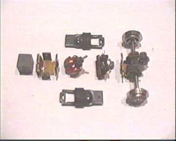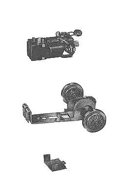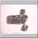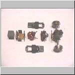 Rechts oben der 'große' . Er bildet mit dem Getriebe eine Einheit und läßt sich davon nur schwer trennen, indem an jeder Seite des vorderen Lagerbleches zwei auseinandergespreizte Nasen zusammengedrückt werden. Diser stärkere Motor wurde ab 1968/9 verwendet.