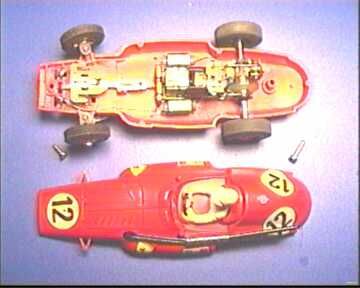 Links der 'kleine' , der leicht vom Stufengetriebe abgenommen werden kann, indem unten ein kleines Halteblech entfernt wird. Den Motor gab es ab der Einführung der Sprint Rennbahn bis Ende 1968.
